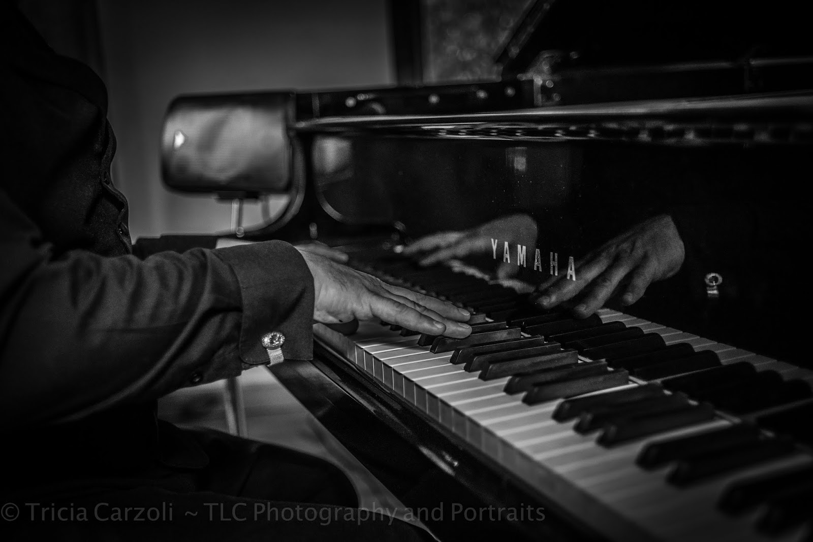 J's stage was an historic dairy-barn-turned-rustic-home. He played on a Yamaha grand piano in the Wallace H. Woodbeck barn. The post-and-beam